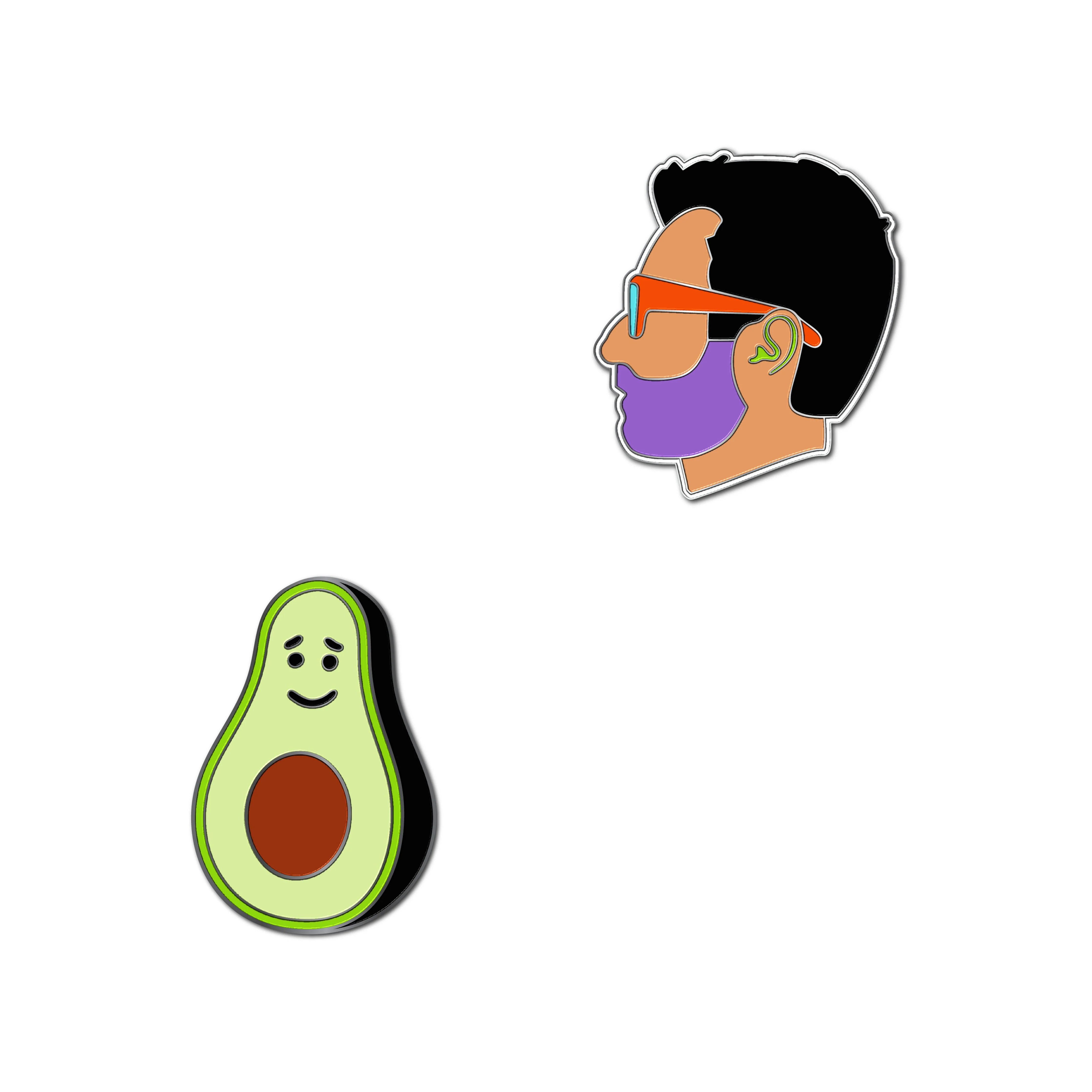 - Two detachable soft enamel metal pins with rubber backing.